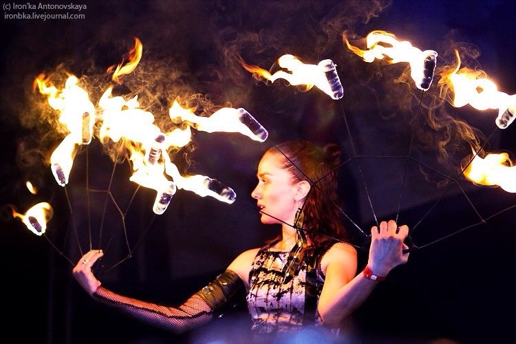 Безумные танцы и опасные трюки с огнем и пиротехникой, отточенная хореография, высокая техника владения огненным реквизитом, сила эмоции, красота и мощь живого огня – все это в нашем шоу. В нем огонь предстает во всех ипостасях. Он завораживает, затем влюбляет в себя, рисует в воздухе замысловатые цветы и узоры, показывает свою истинную силу, пугает, и в конце рассыпается фонтанами искр.