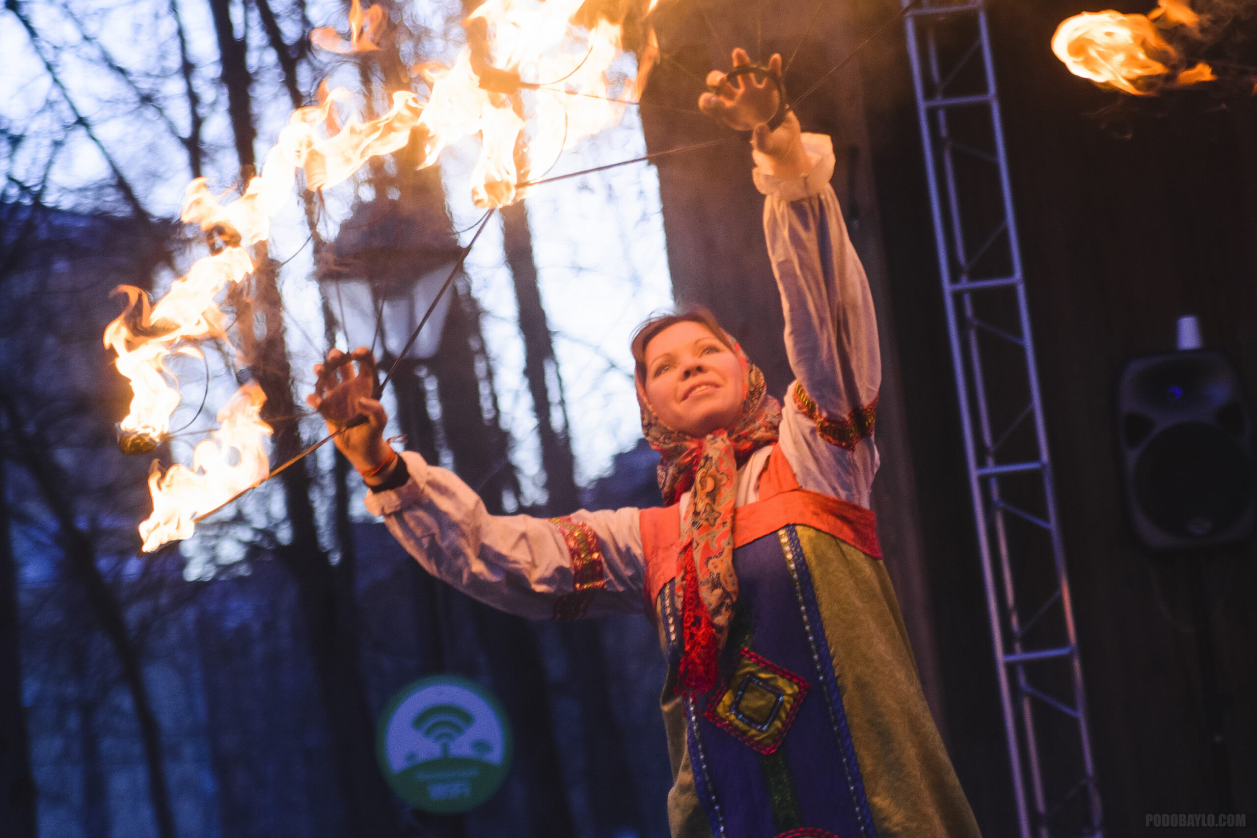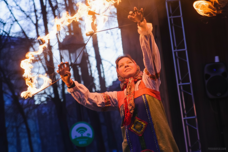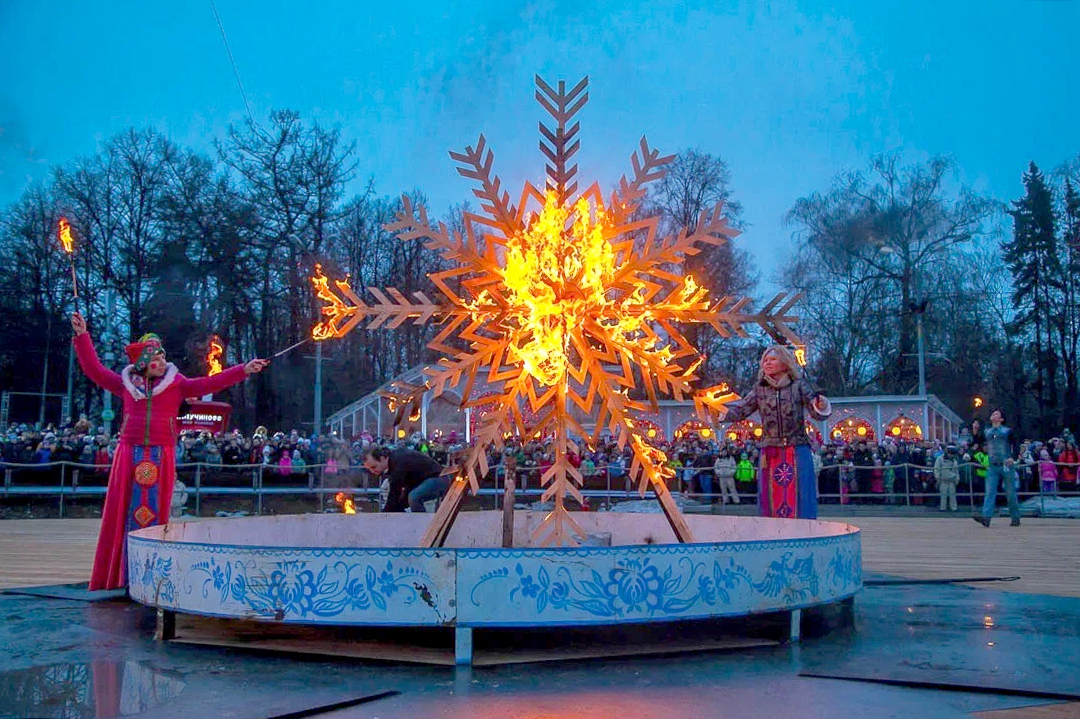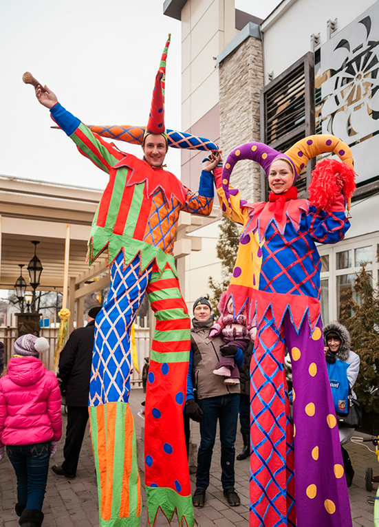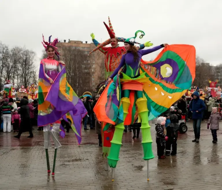 Веселый ведущий, огненные танцы, пиротехнические эффекты, ходулисты-скоморохи и артисты в костюмах блинчиков — всё, что создаёт атмосферу масличного праздника. От народных игр до огнеметов — всё держит внимание и даёт потрясающий фотоконтент.